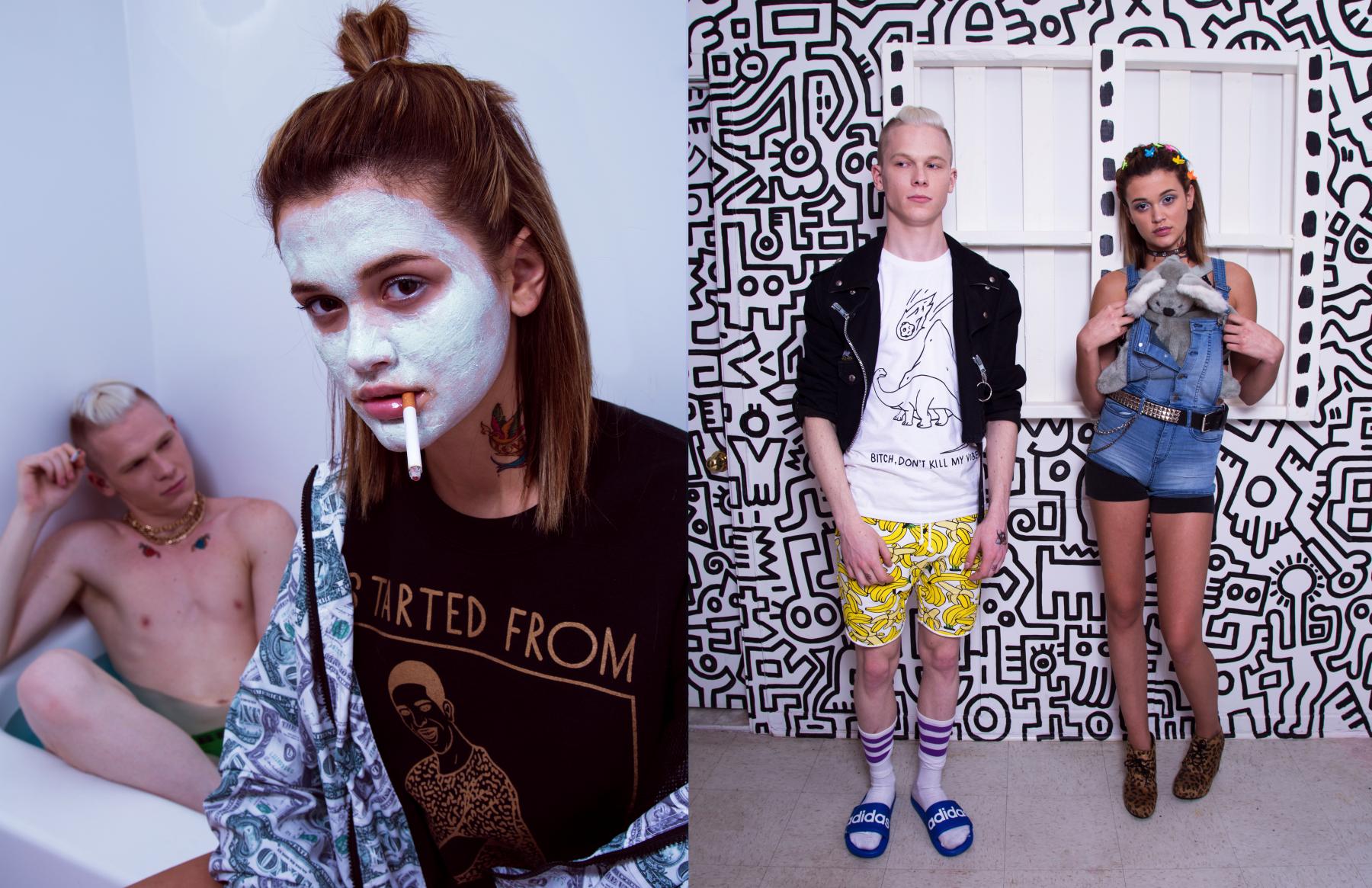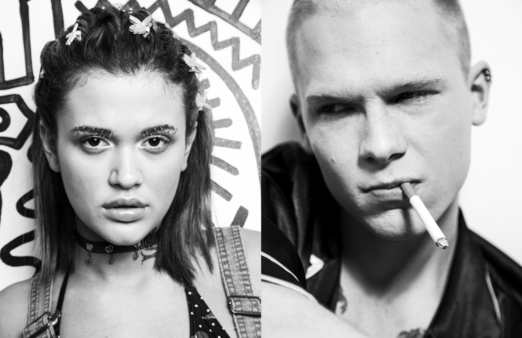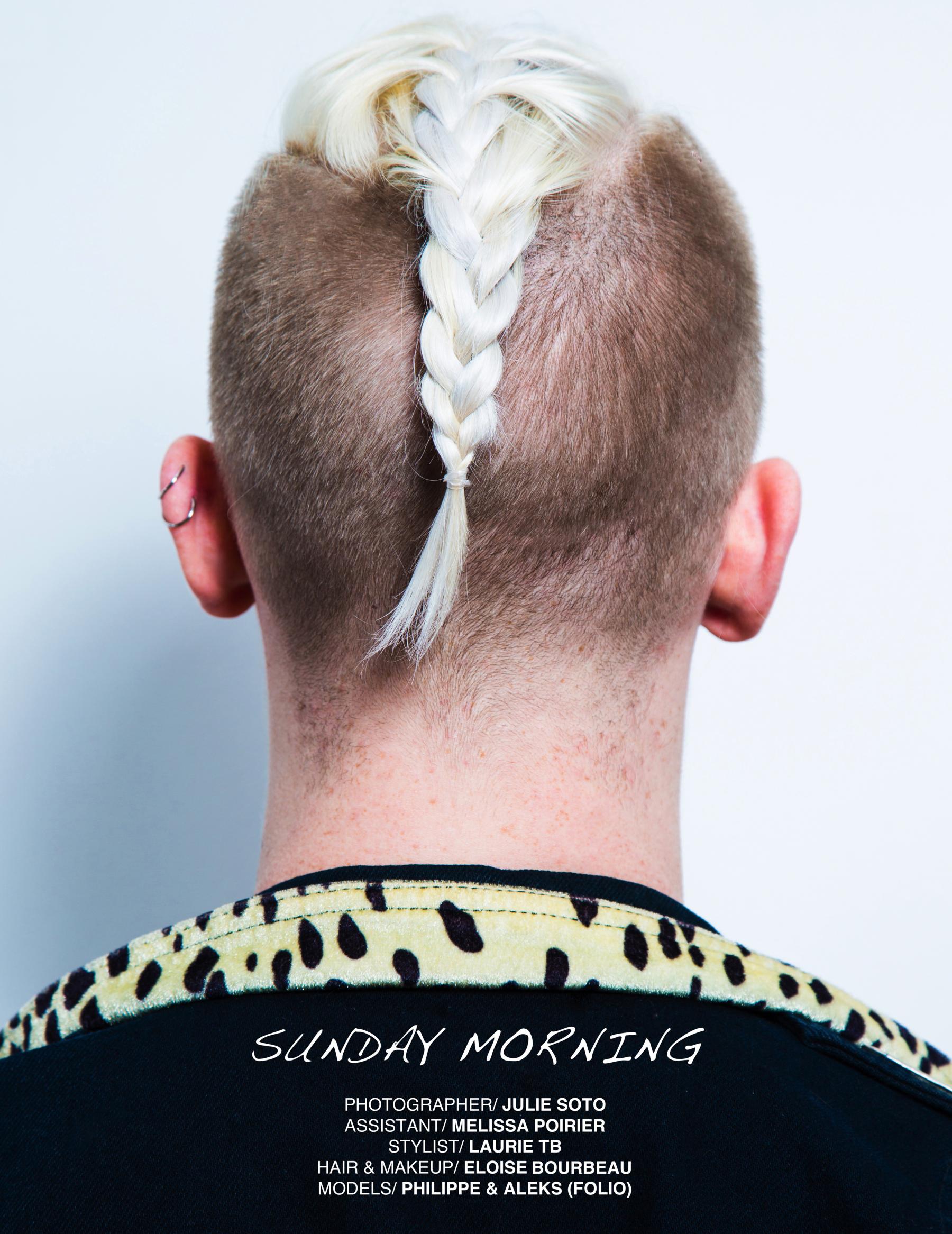 Aleks and Philippe make an edgy couple in this Sunday Morning editorial. --- Philippe et Aleks forment un couple aux airs de punk dans ce nouvel édito. Photo: Julie Soto