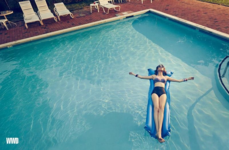 Anaïs Pouliot lounges in retro-inspired swimwear for photographer An Le in WWD.
