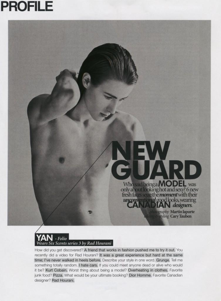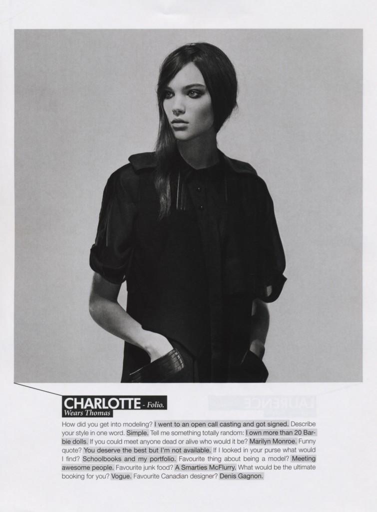 With Styling by Cary Tauben. Folio models Charlotte and Yan are named in the six new fresh faces to watch for Dress to kill’s New Guard editorial.