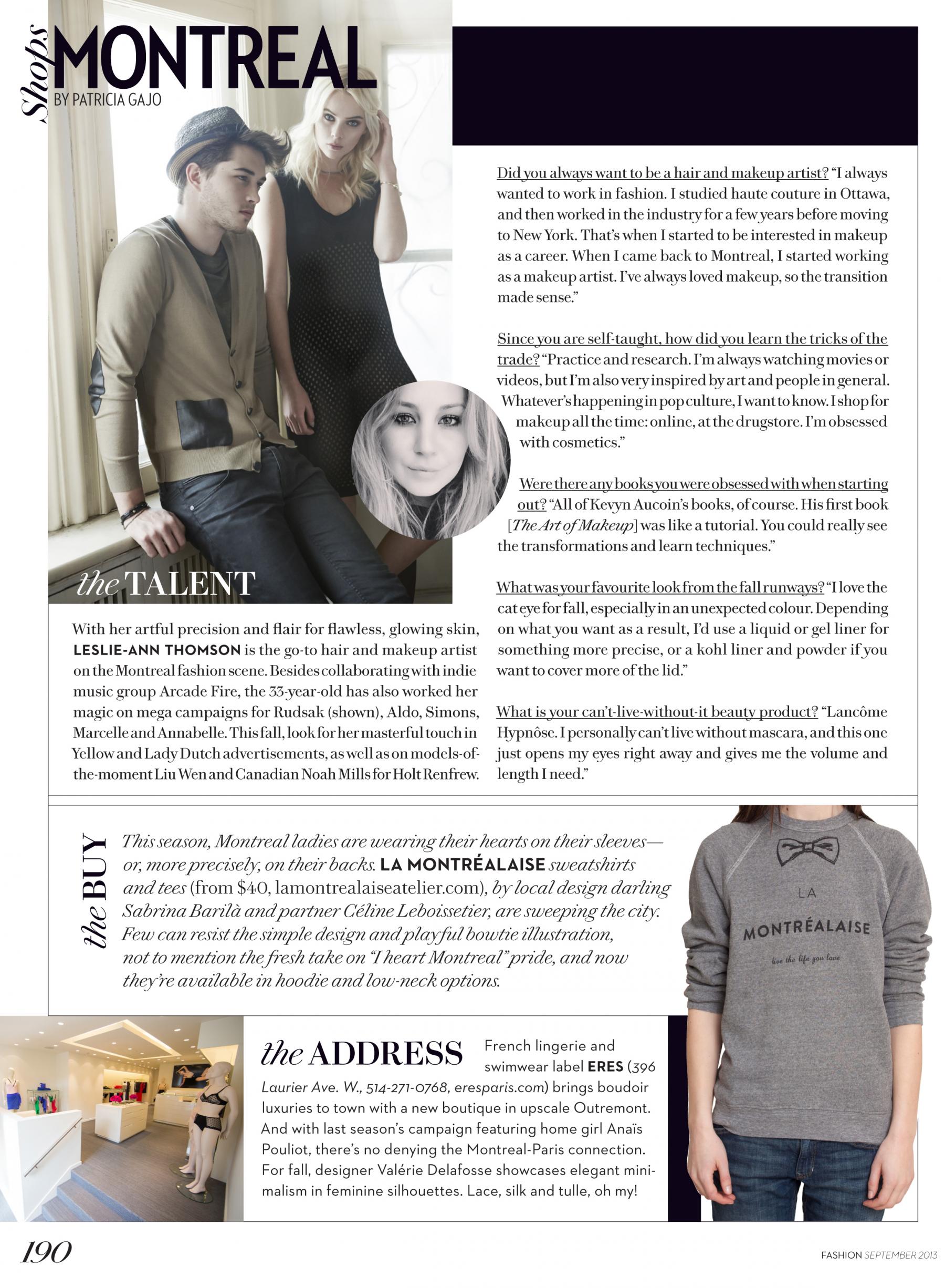 Notre artiste Leslie-Ann Thomson a été interviewée par Patricia Gajo pour le Fashion Magazine. --- Our hair & make-up artist Leslie-Ann Thomson was interviewed by Patricia Gajo for Fashion Magazine.