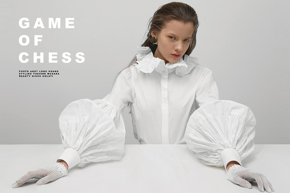 Qui a dit que les chemises blanches étaient ennuyantes? Mayya est divine dans cet éditorial de Flaunt Magazine grâce à nos artistes Folio Tinashe Musara au stylisme et Nisha Gulati à la mise en beauté.